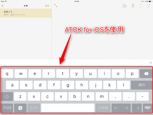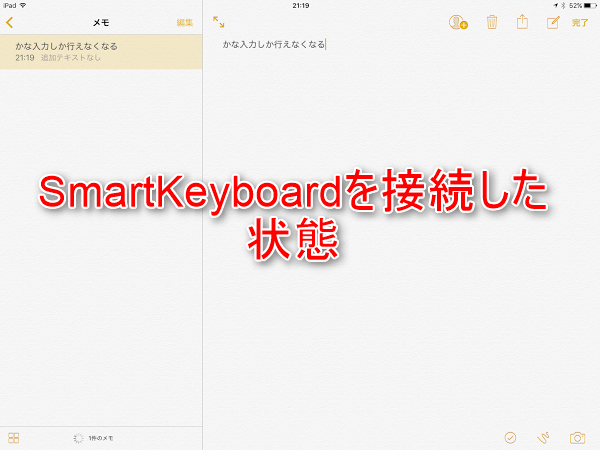 ATOK for iOSをソフトウェアキーボードで使用している状態で,SmartKeyboard(JIS)を接続する