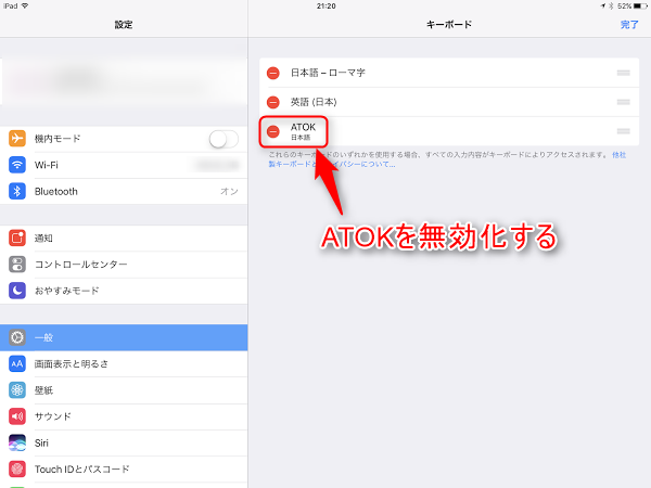 ATOK for iOSを無効化すると「英数」切替が可能になる