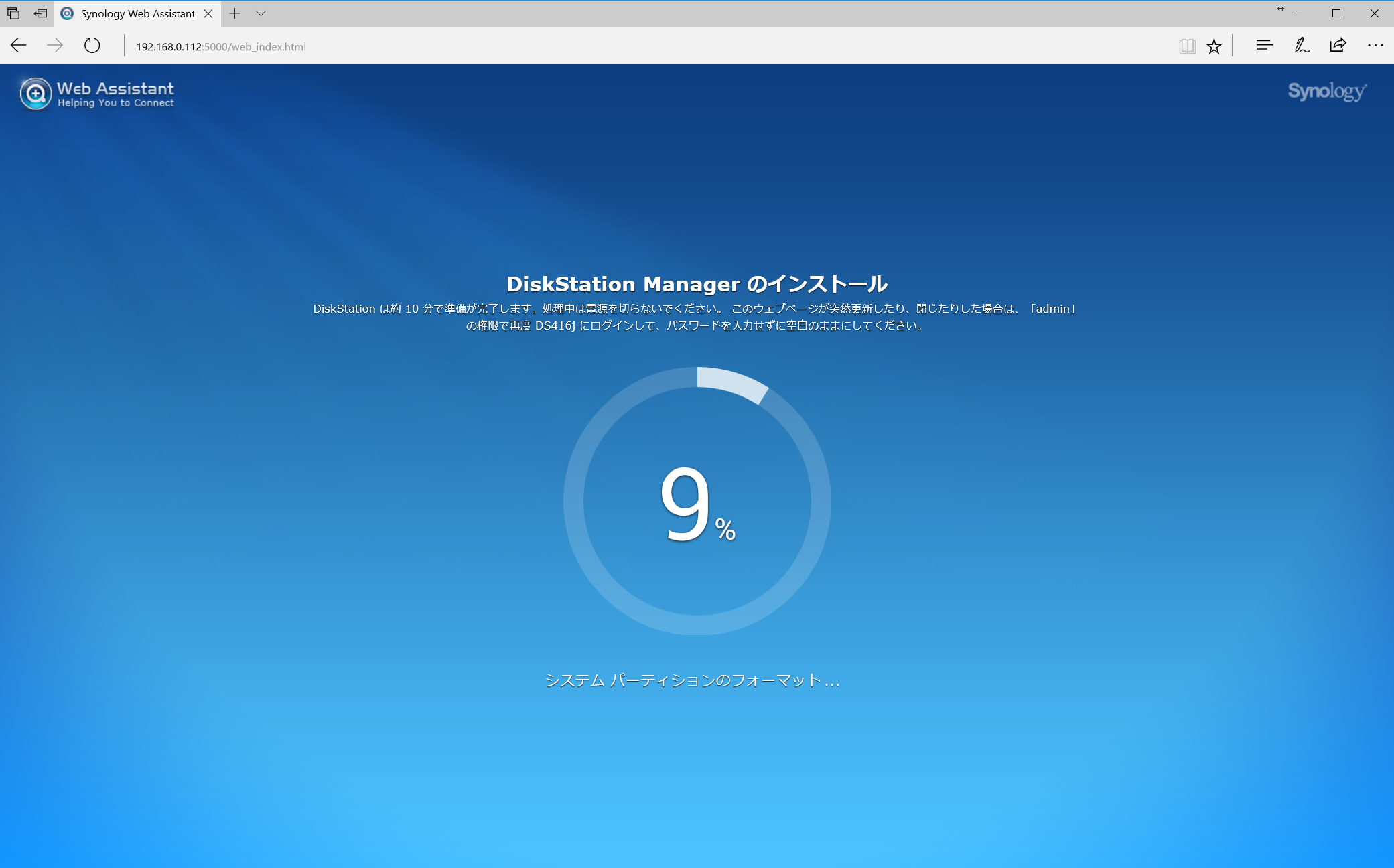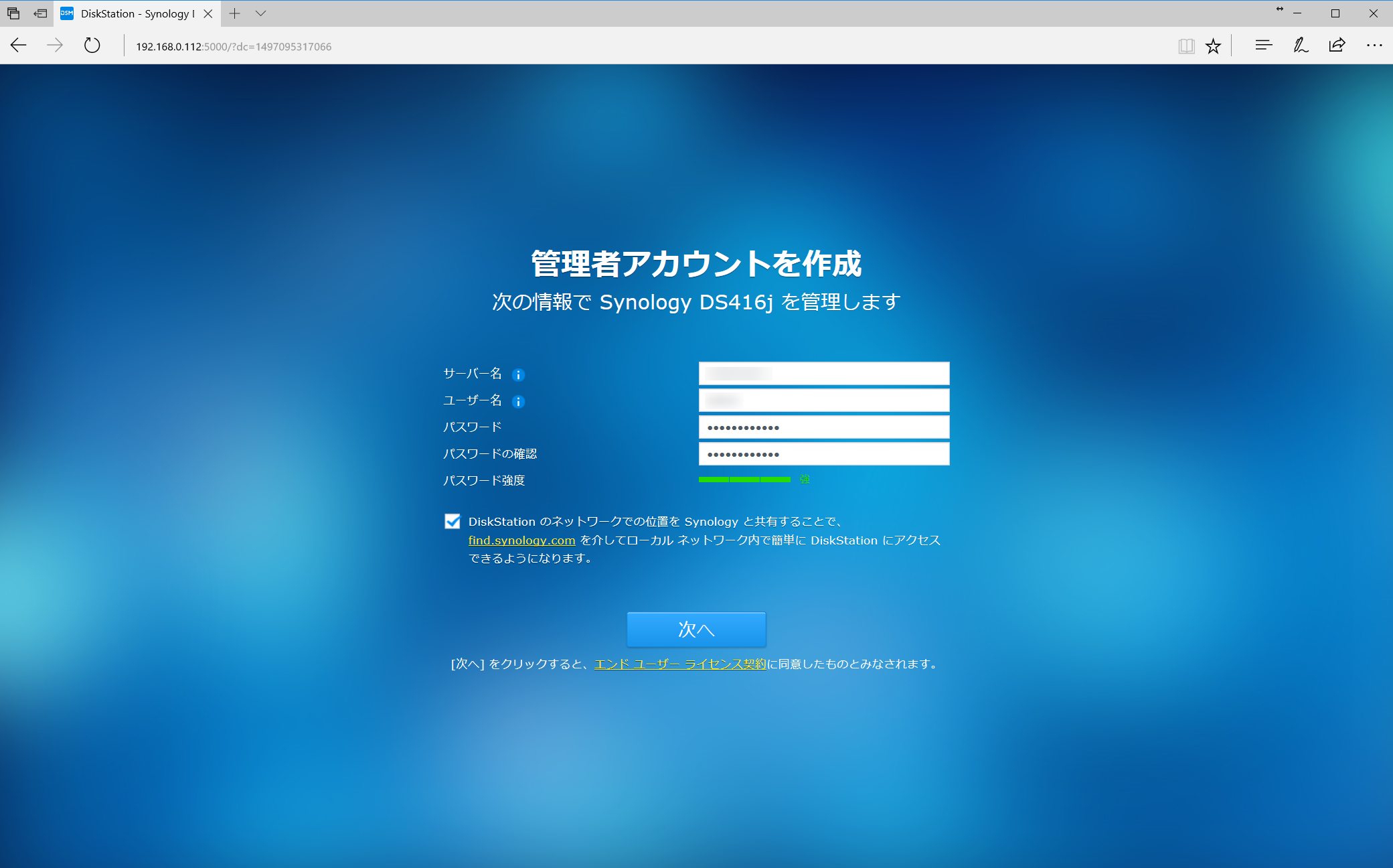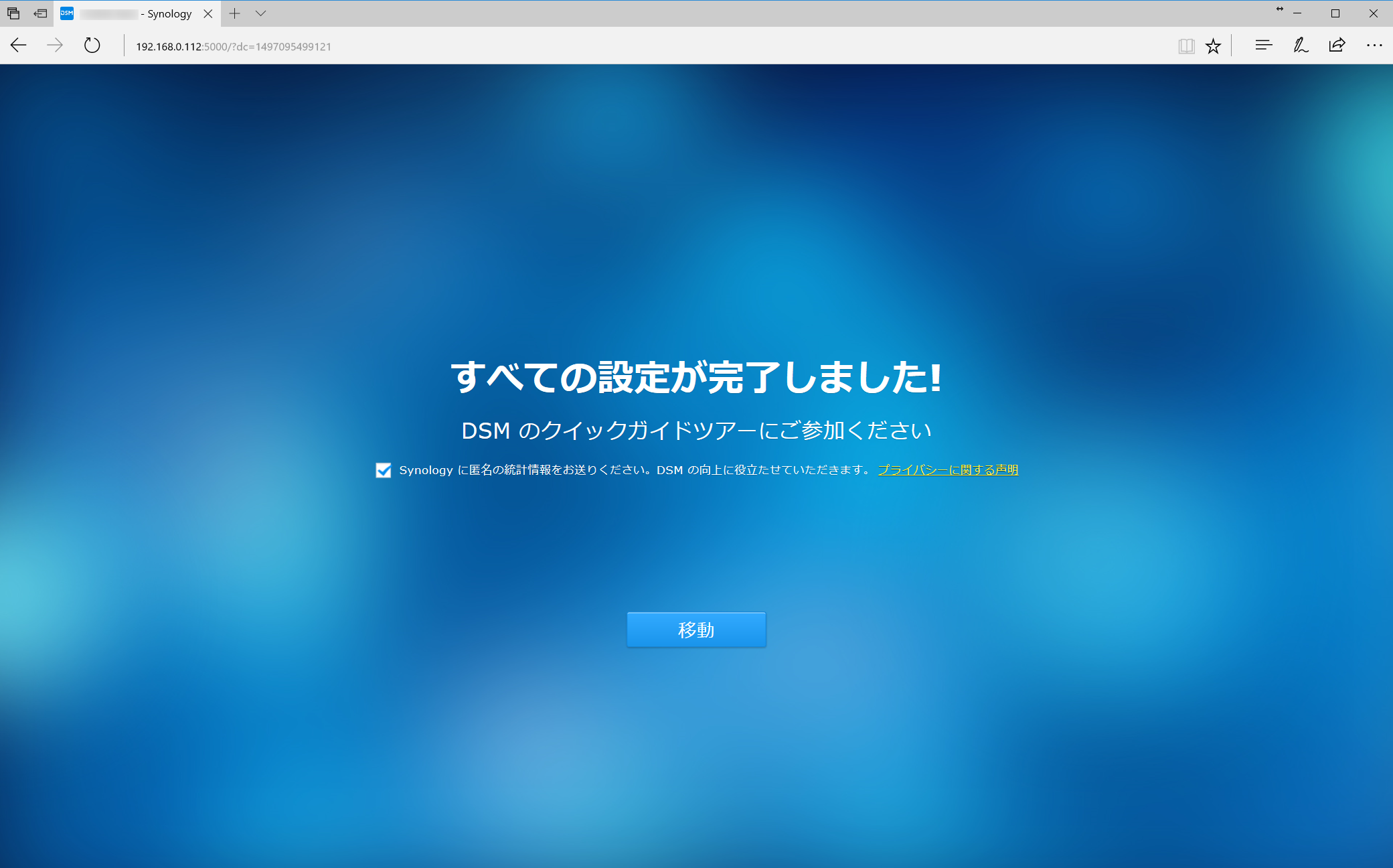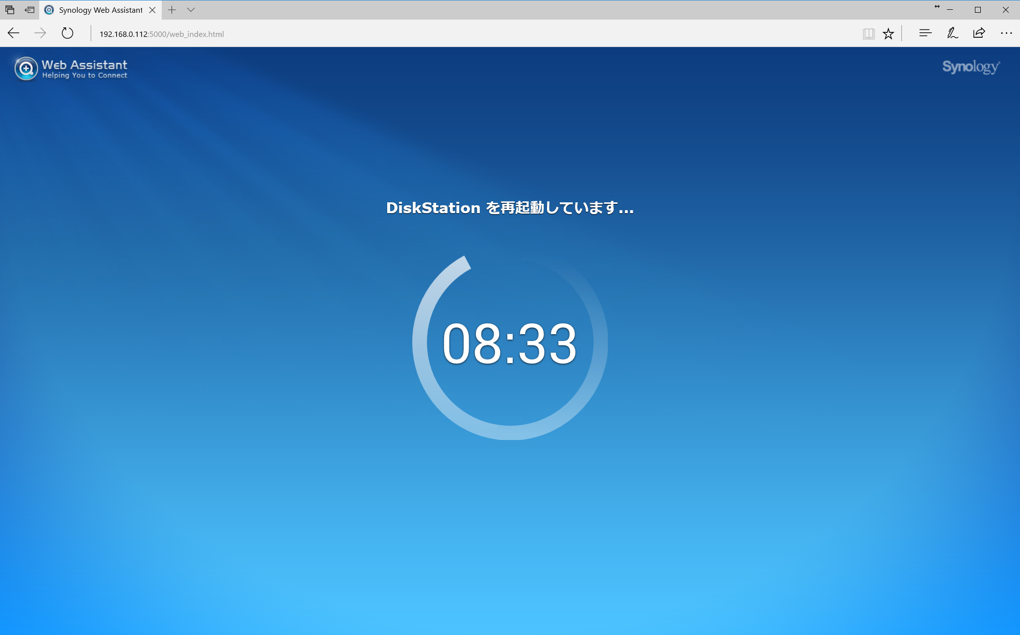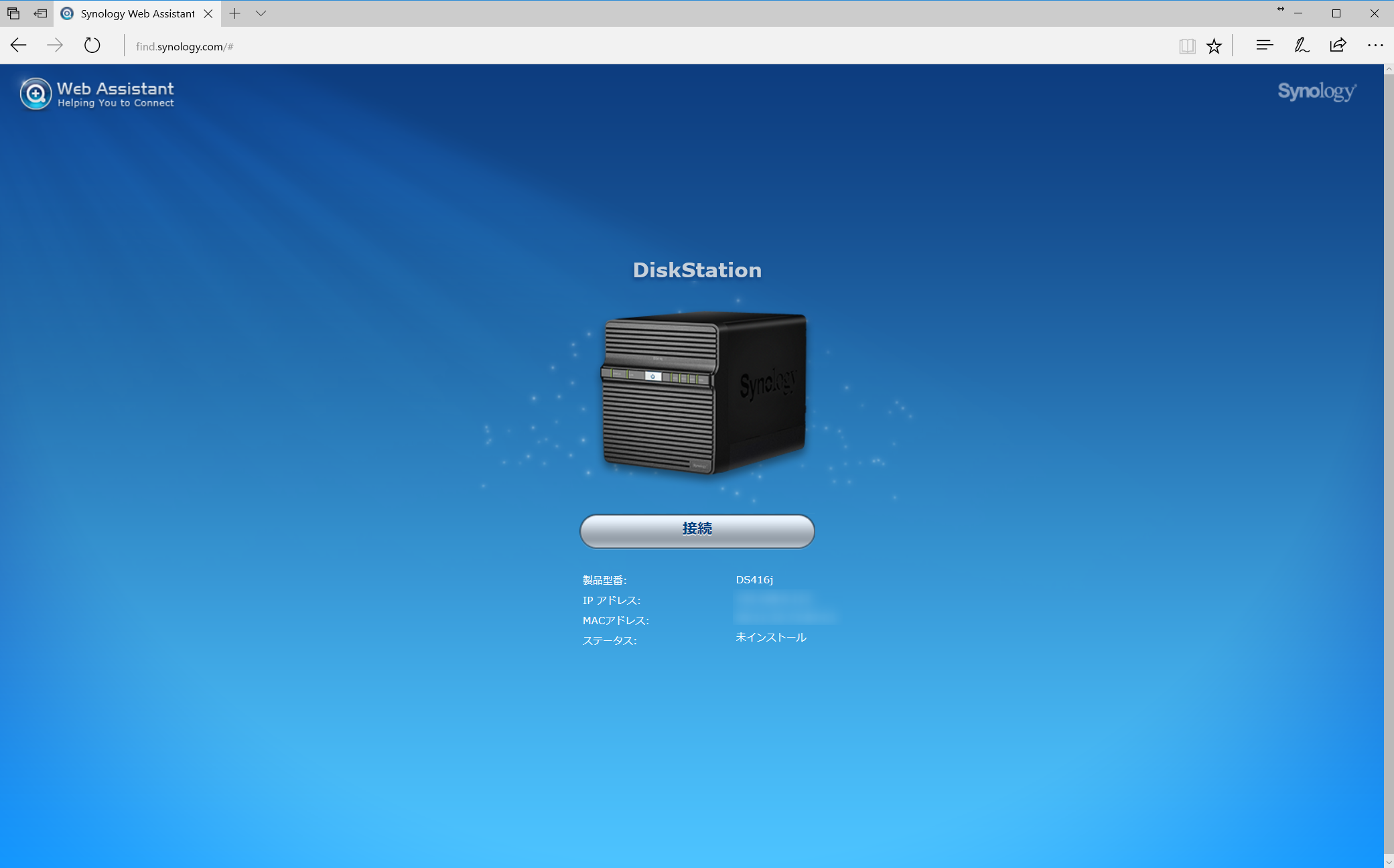 DHCP環境の場合,しばらくするとブラウザから「http://find.synology.com/」にアクセスできるようになります.