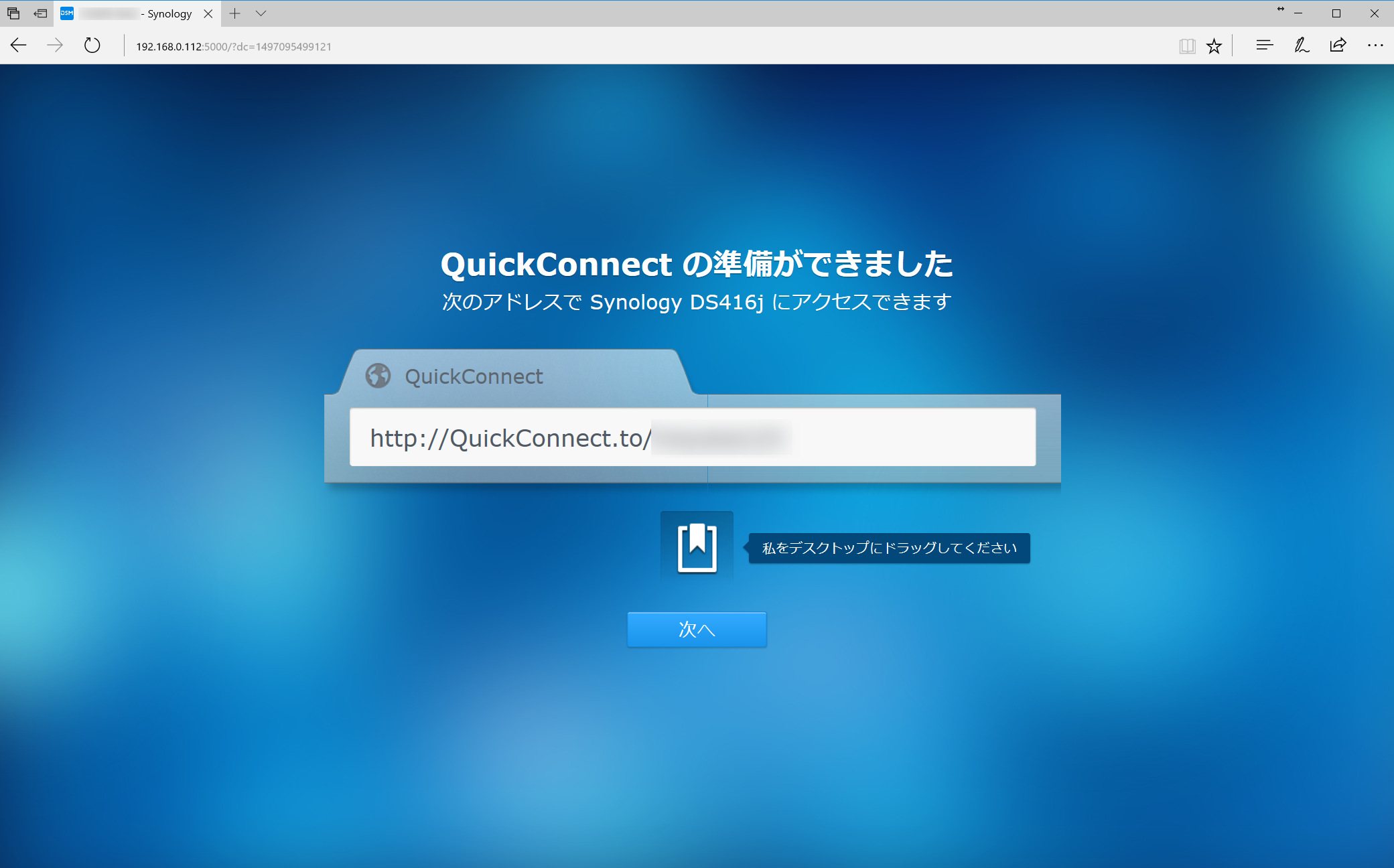 外部から簡単にアクセスが可能になるQuickConnectの設定を行います. 外部からの利用を行わない場合はスキップすることも可能です.