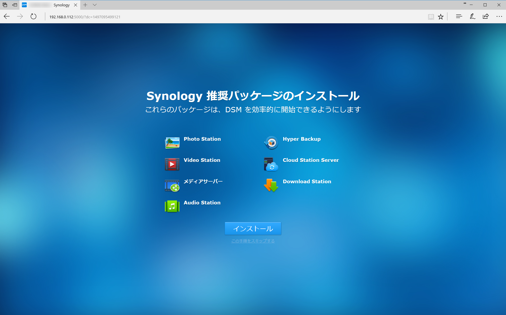 Synology推奨のパッケージをインストールしていきます. ここでも不要なものはスキップできますが,今回はひとまず全てインストールしました.