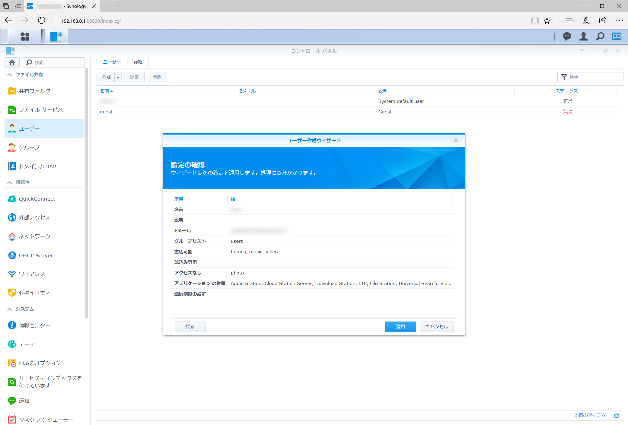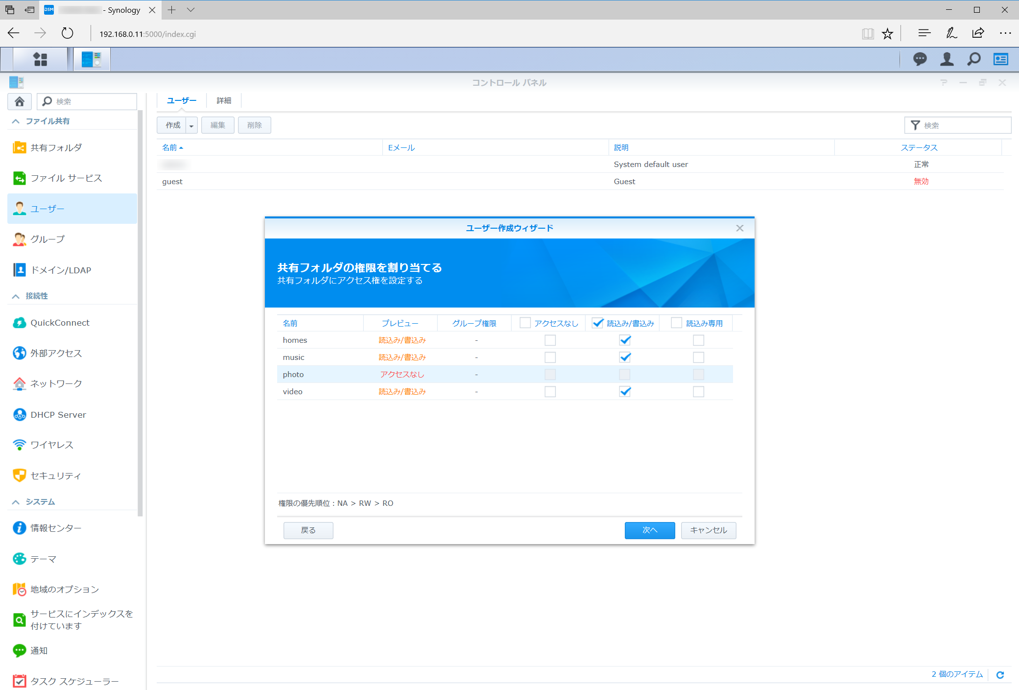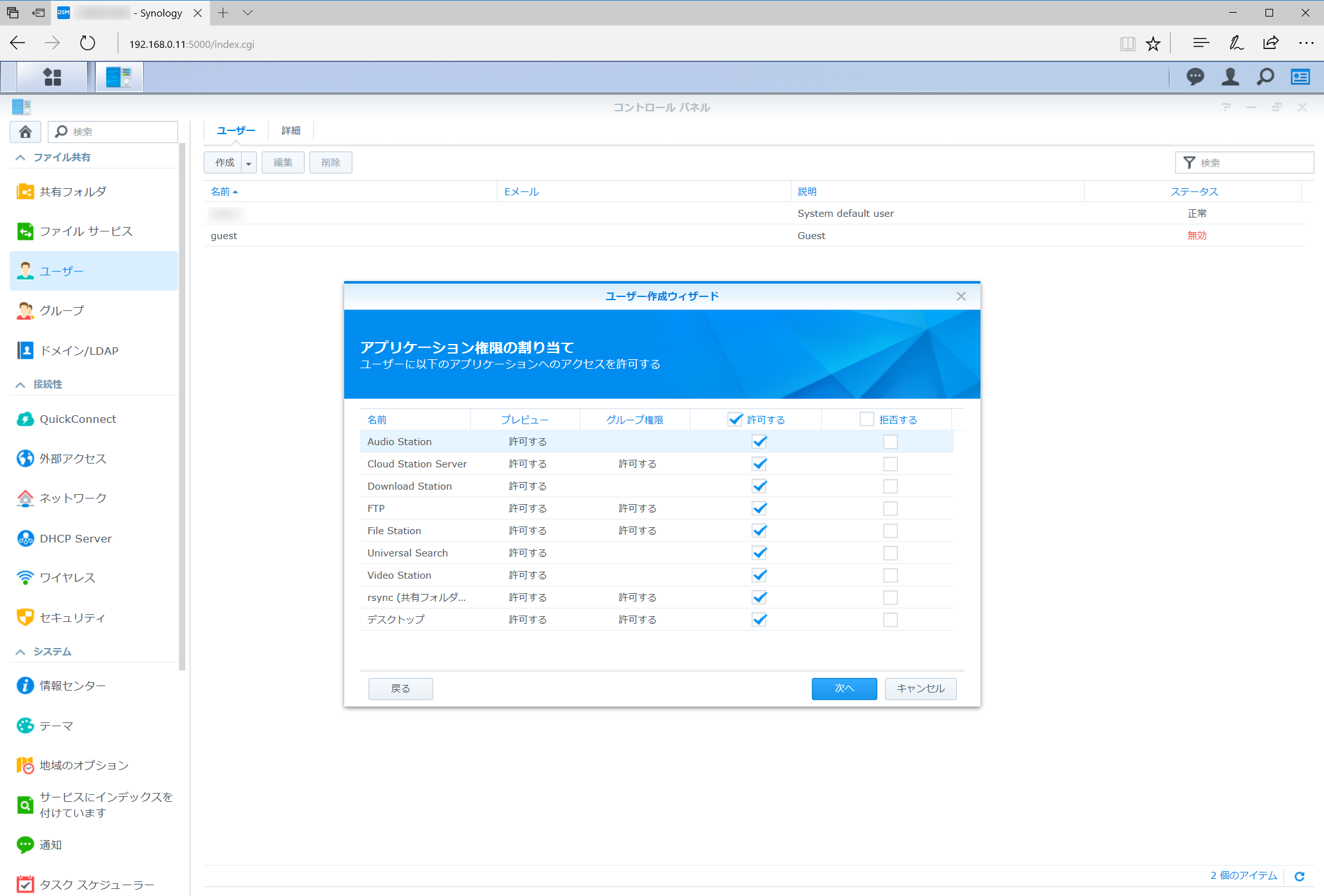NASにインストールされたアプリケーション毎のアクセス権も設定が可能です.