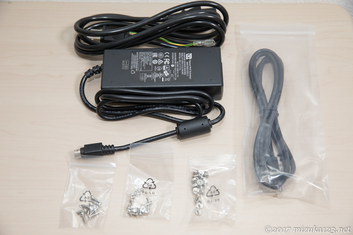 付属品はACアダプター,LANケーブル,HDD取付用ネジです.