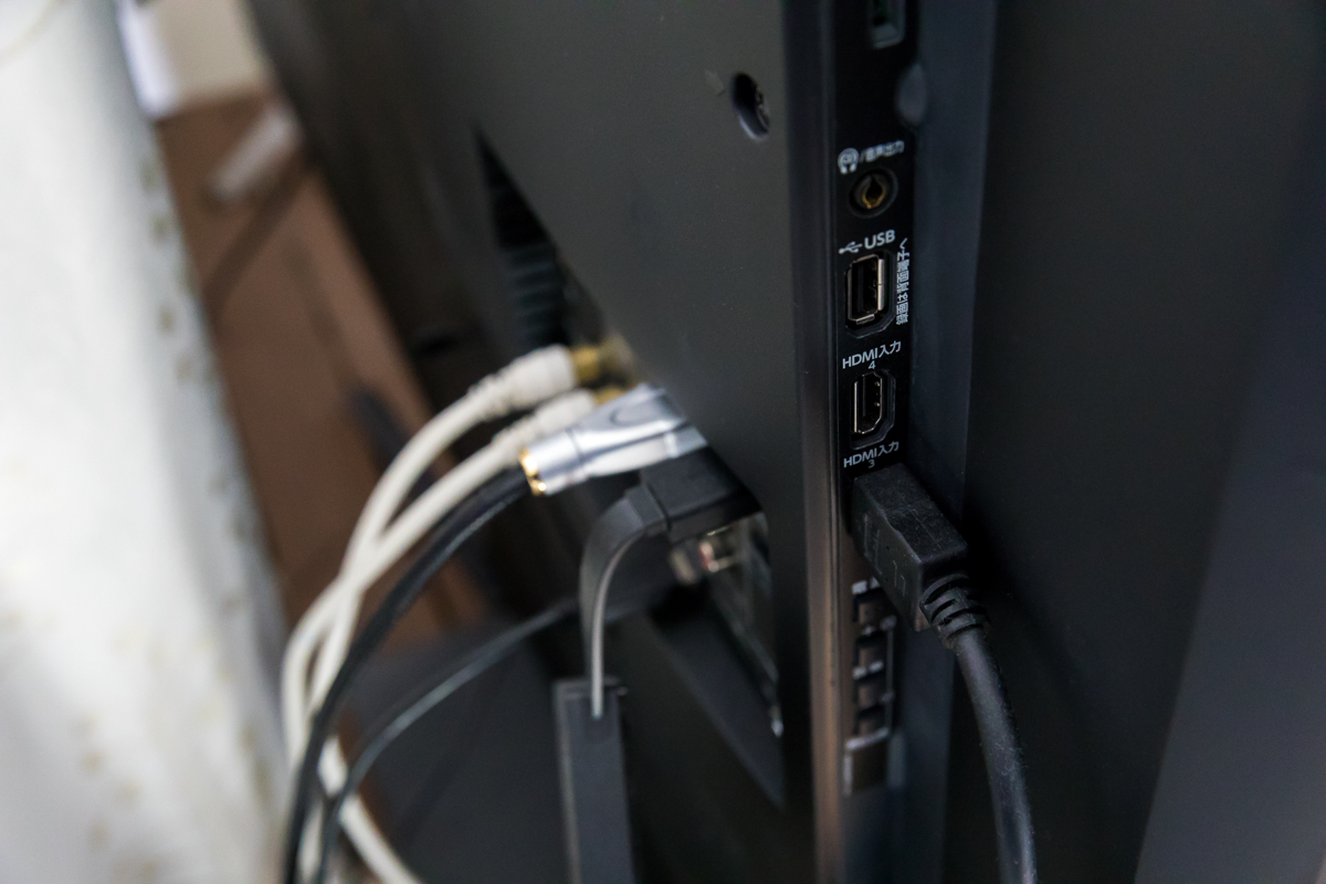 端子類は正面から見て左サイドと後ろ側にあります。 4つ全てがHDMI2.0対応なので困ることはないでしょう。